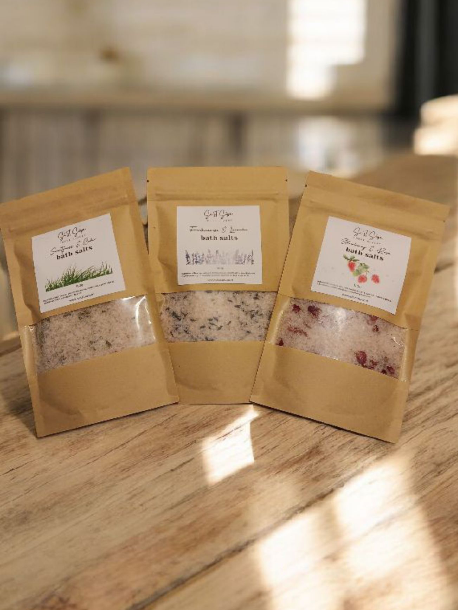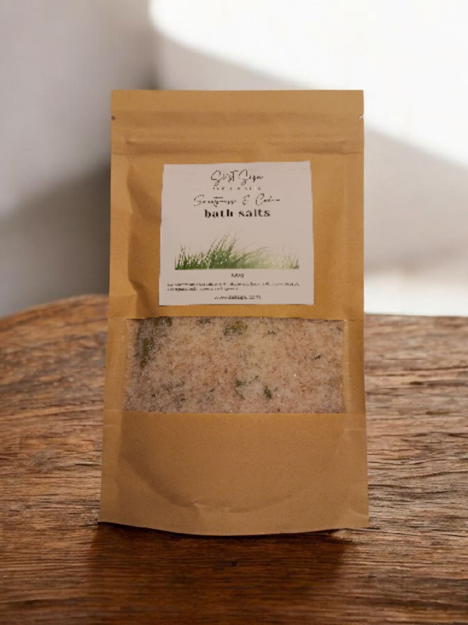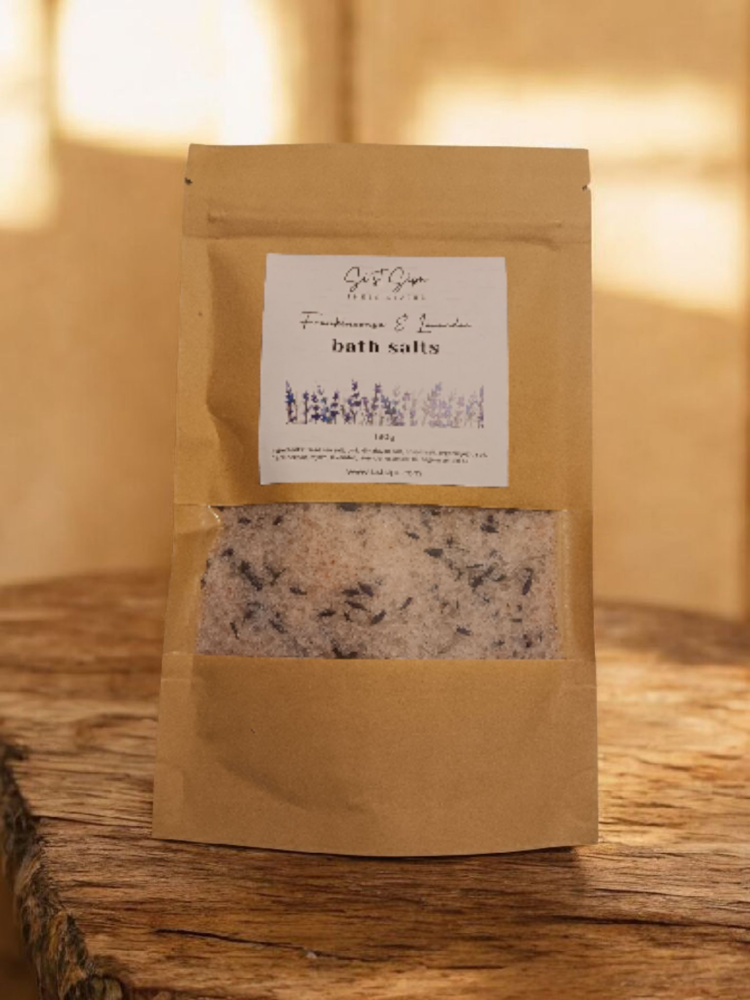 How to Use: Add 2–4 tablespoons to warm bathwater. Allow the salts and herbs to infuse before entering the bath. Relax, breathe deeply, and let the body unwind.